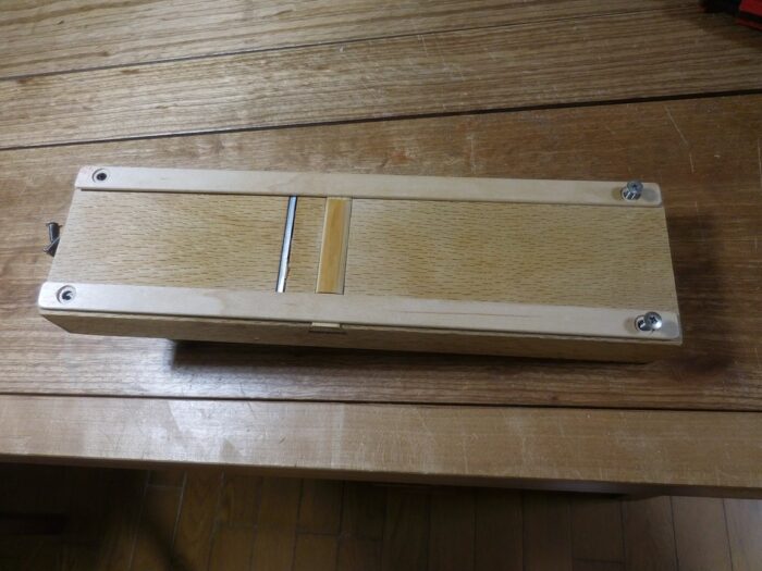 プロの組子職人は、例外なく組子専用に開発された小型の自動鉋盤と超精密鉋盤の組み合わせでやってます。でも、こういう機械の無い時代だって組子職人(というよりも、建具職人は組子が必須必須だったような気がする)は居たわけですよ。その人たちのやり方を踏襲すべきでしょう。